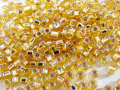 *スクエア型の穴のシードビーズ。金色のAB(オーロラ)加工に中染めでシルバーが入っています。