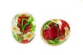 ちょっと重量感のある大きいとんぼ玉です。透明のガラスの内側に赤が入った、中染めタイプ。