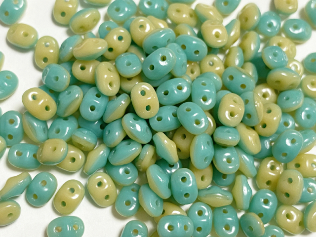 スーパーデュオDUETS 2.5x5mm (オペイク グリーンターコイズ/アイボリー) 約10g