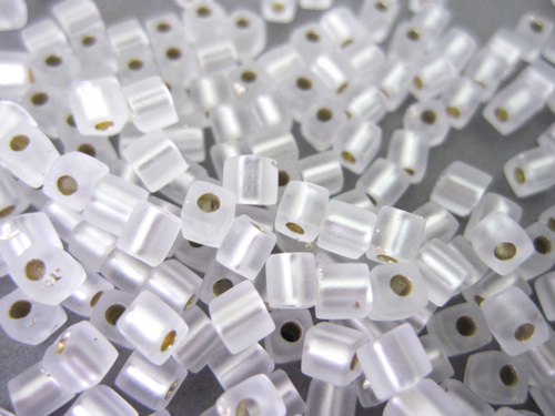 スクエアビーズ 3mm(シルバーライン/マットクリスタル)20g